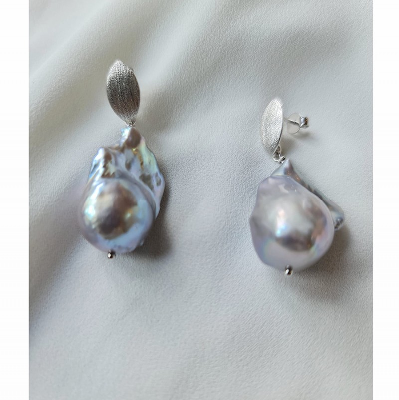 Cercei statement cu perle de cultura de apa dulce fireball de 2.2 cm si accesorii din argint 925. Perlele au o minunata nuanta tratara gri metalic-albastru cu orient. Calitatea perlelor este AAA