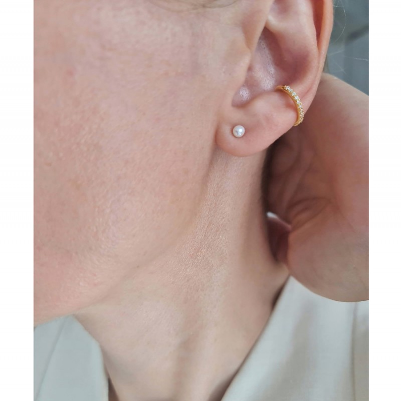 Obiectul prezentei oferte de vanzare ii constituie cerceii cu perla mai mica, de 3 mm. Cercei cu perla de 7 mm si cerceii cuff ce insotesc in fotografii produsul descris mai sus, nu fac obiectul prezentei oferte.
