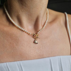 Colier unicat cu perle de cultura moneda si decoratiune inimioara