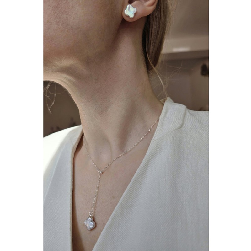 Colier delicat realizat cu lant reglabil din argint 925 si perla trifoi cu 4 foi. Perla este de cultura de apa dulce, are luciu bun, culoare naturala-alb, dimensiuni 1*1cm. Lantul este reglabil prin culisarea extensiei din fata prin montura slide bead, intre 37-44 cm